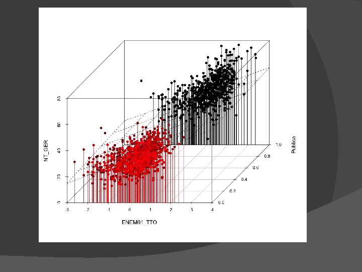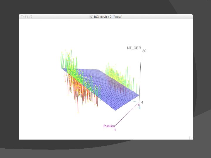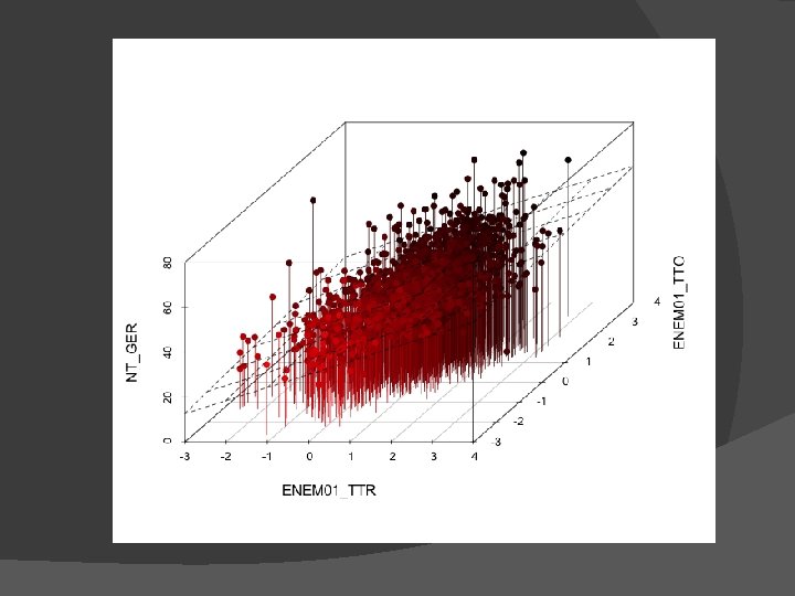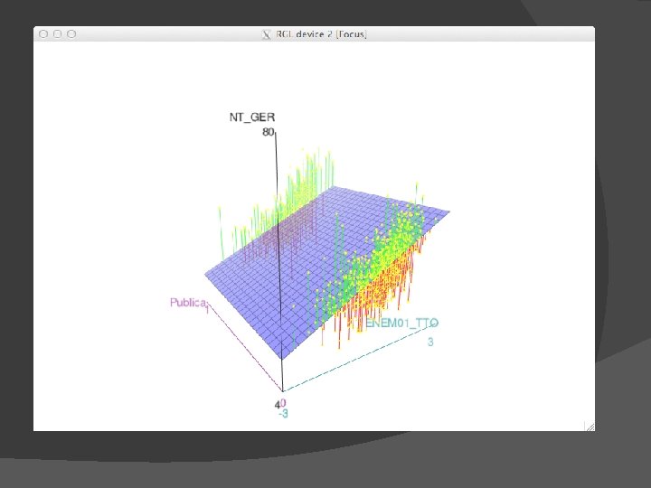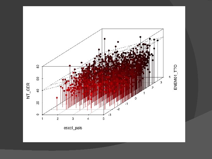 Regressão Múltipla � Equação de previsão Ŷ = b 0 + b 1 X 1 + b 2 X 2 + b 3 X 3 + … b P X P � “Melhor" equação, que, da mesma forma, minimiza os erros, definidos como: SSResidual = ∑(Y – Ŷ)2 onde: Y = escores no critério observados Ŷ = escores no critério previstos SSResidual da mesma forma, indica a extensão em que a previsão não corresponde aos dados observados � Mas essa análise está em um espaço multidimensional � � 3+ dimensões (e. g. , pelo menos Y, X 1, e X 2) � A “reta de regressão” é agora uma “superfície de regressão”.