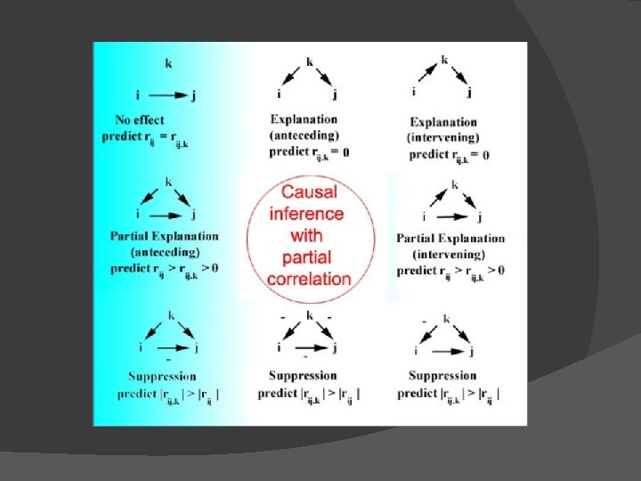 Conceitos Variável de controle � Efeito (inferência causal) � Correlação espúria � Explanatória/explicativa ou parcialmente explanatória/explicativa � �VI e VD = 0 ou menor depois da inclusão da variável controle Supressora � Mecanismos explanatórios � �Antecedente / interveniente (mediadora)