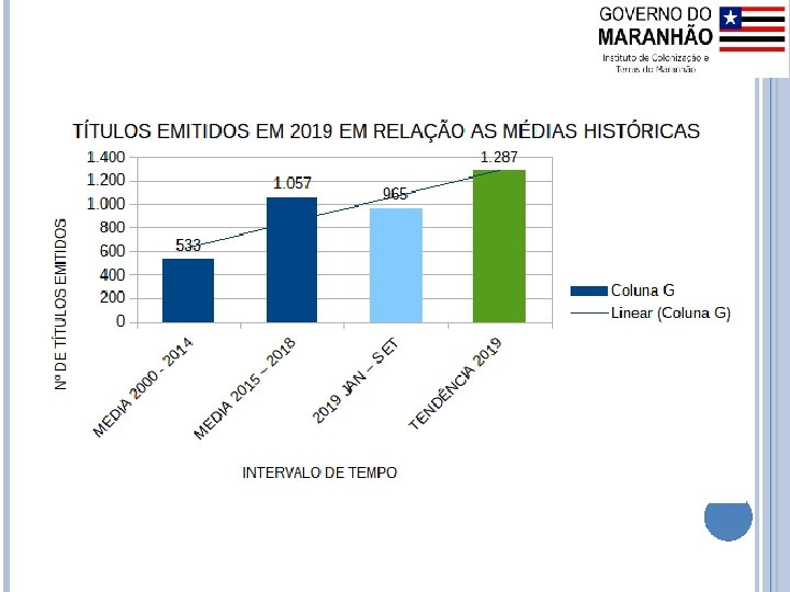 DESAFIOS PARA ATUAÇÃO ITERMA Atualização da Legislação de Terras do Estado; Fortalecimento do Instituto – recursos humanos e tecnológicos; Relação com as Serventias Extrajudiciais; Alto índice de conflitos fundiários; Discrepância entre as informações contidas nos bancos de dados com informações fundiárias: Área do Estado do MA: 32. 964. 217 hectares Glebas arrecadadas pelo ITERMA: 4. 010. 599, 7442 hectares; SIGEF: 8. 748. 620, 79 hectares; CAR: 21. 568. 681 hectares (área passível de cadastro 13. 033. 568 hectares); Área registrada nos CRI: ? ? ? Dados atualizados até maio/2019