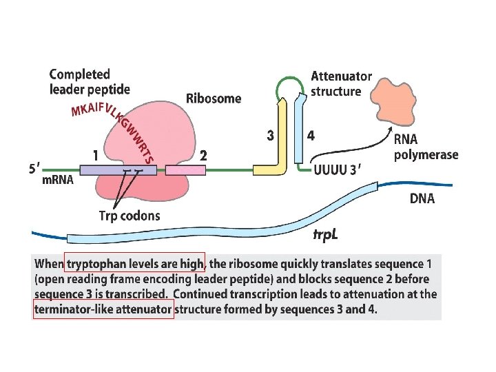 Translational Regulation 1. Phosphorylation of initiation factor less active 2. Protein repressor bind to 3’UTR of m. RNA to prevent translation initiation 3. Binding proteins disrupt the interaction of el. F 4 E and el. F 4 G to prevent the formation of eukaryotic initiation complex