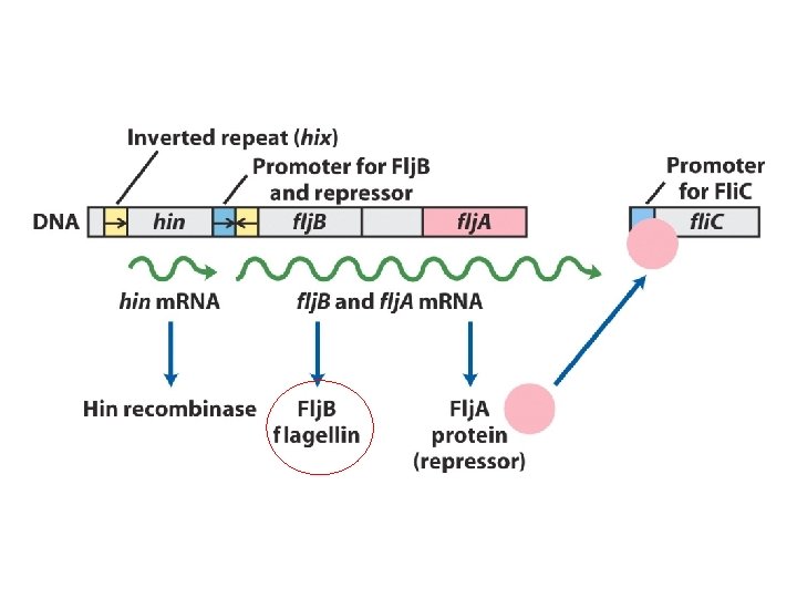 Salmonella typhimurium with flagella Flagellin (MW 53 k. D) are the targets of mammalian Immune system Phase Variation Switch between two distinct flagellin (Flj. B, Flj. C) once 1000 generations