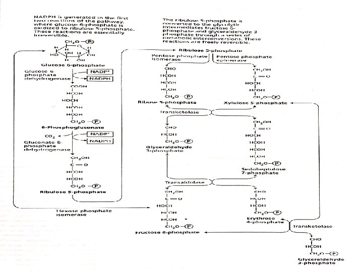 Pentose phosphate pathway or Hexose mono-phosphate shunt It is the alternative pathway of glycolysis Takes place in cytosol and in plastids (mostly occur) First two reactions are oxidative reaction converting glucose 6 -phosphate (six carbon molecule) into ribulose 5 -phosphate (five carbon molecule) releasing CO 2 and form two molecules of NADPH. The ribulose 5 -phosphate convert into glycolytic intermediates like glyceraldehyde 3 -phosphate and fructose 6 -phospohate which enter in glycolysis and form pyruvate.