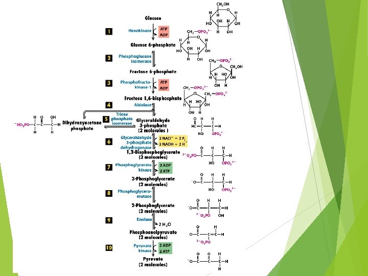 Energy yield from glycolysis During aerobic respiration: Utilize 2 ATP and 2 NAD+ Produce 4 ATP and 2 NADH = (10 ATP) Net gain of ATP = 10 ATP – 2 ATP = 8 ATP 2 NADH molecules formed in glyceraldehyde 3 - phosphate dehydrogenase reaction which enter in Electron transport system. NADH = 3 ATP