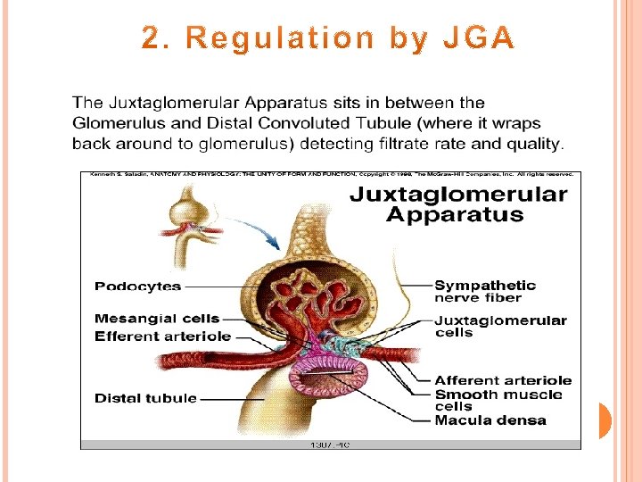 There is a special sensitive region called juxta glomerular apparatus (JGA) formed by cellular modification of DCT and the afferent arteriole at the location of their contact. JGA regulates the GFR. A fall in glomerular blood flow/glomerular blood pressure/GFR activates the JG cells to release renin.