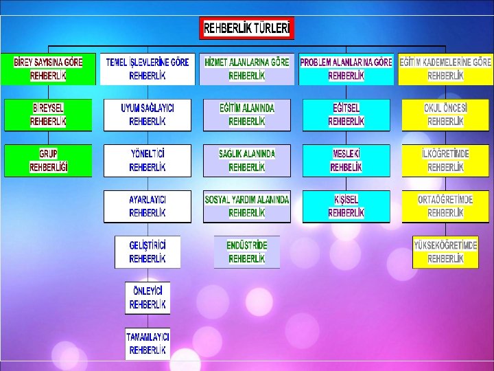 5 - Problem Alanlarına Göre Rehberlik • Eğitsel rehberlik • Mesleki rehberlik • Kişisel- sosyal rehberlik olarak bir sınıflandırma yapılmıştır.