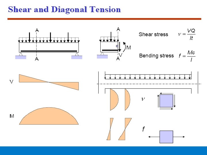 RC beams with web reinforcement − Before development of diagonal shear cracks, there is no noticeable effect of web steel. − When the diagonal cracks are intercepted by the web steel, these are restricted from further extending into compression zone. − For the cracked part the web steel restricts the cracks width and lead to interface shear. − The web reinforcement also check the cracks development along the main reinforcement, thereby providing restraint against the slitting of concrete and leads to shear strength contribution also called dowel action. − The total shear strength of web/ transverse reinforced RC beams is sum of the concrete contribution and web steel contribution. i. e. Vs = Vc + Vw = (1. 9√f’c + 2500 ρ Vd/M<3. 5 √fc’)bd +Avfyd/s − Minimum web reinforcement given by ACI is − This provision holds unless Vc is one half or less than the design shear stress − For floor beams system, beams with total depth of 10 in or less the maximum spacing may not exceed 2 ½ times the slab thickness or one half of width of the beam whichever is greater. −