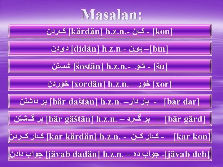 ![ﺩﺭ آﻮﺭﺩﻥ [där avärdän] chiqarmoq ﺑﺮ گﺸﺘﻦ [bär gäshtän ] qaytmoq ﻓﺮﺍ گﺮﻓﺘﻦ ﺩﺭ آﻮﺭﺩﻥ [där avärdän] chiqarmoq ﺑﺮ گﺸﺘﻦ [bär gäshtän ] qaytmoq ﻓﺮﺍ گﺮﻓﺘﻦ](https://slidetodoc.com/presentation_image_h/18a99aed46ce88562c7472fe24a5d6b6/image-11.jpg)