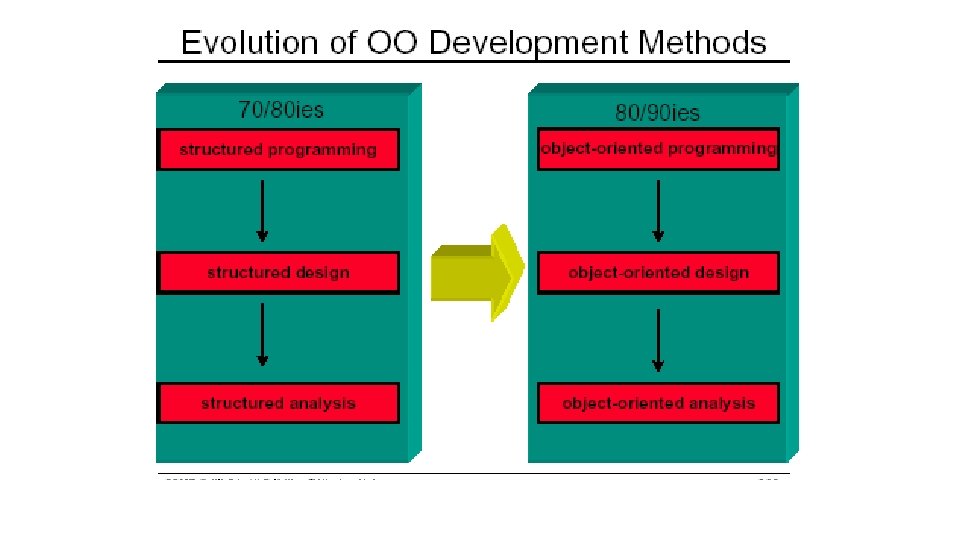 • Orientasi obyek cocok untuk proses evolusioner dengan pendekatan penggunaan kembali komponen-komponen sistem. • Rekayasa perangkat lunak OO menekankan penggunaan ulang kelas-kelas dalam pustaka. • Bila suatu kelas tidak ada pustaka, maka perekayasa perangkat lunak meangaplikasikan analisis berorientasi obyek (OOA), perancangan berorientasi obyek (OOD), pemrograman berorientasi obyek (OOP) dan pengujian berorientasi obyek (OOT).