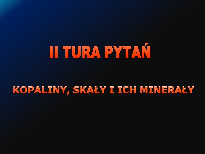 Na mapie Polski znajduje się po kolei lokalizacja 10 kamieniołomów eksploatujących obecnie lub w przeszłości skały różnego wieku z nazwami. W odpowiedzi trzeba wpisać skałę, która jest lub była w nim eksploatowana Za każdą dobrą odpowiedź uczestnik otrzymuje 2 punkty. Czas na odpowiedź na każde pytanie – 15 sekund.