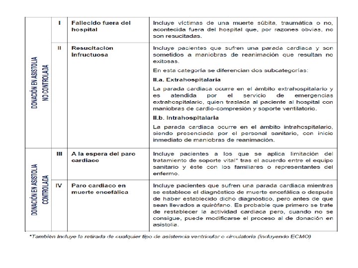 LET Y DONACIÓN EN ASISTOLIA CONTROLADA III. RECOMENDACIONES PARA UNA BUENA PRAXIS. Situación actual de la donación en asistolia (1). Maastricht 1995. Tipos de donantes. -Tiempos de isquemia caliente. - Tipos I y II la parada cardiorrespiratoria se produce de manera imprevista “donación no controlada”. - Tipos III y IV el fallecimiento se prevé “donantes en asistolia controlados”