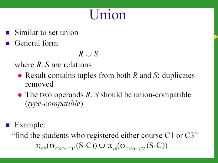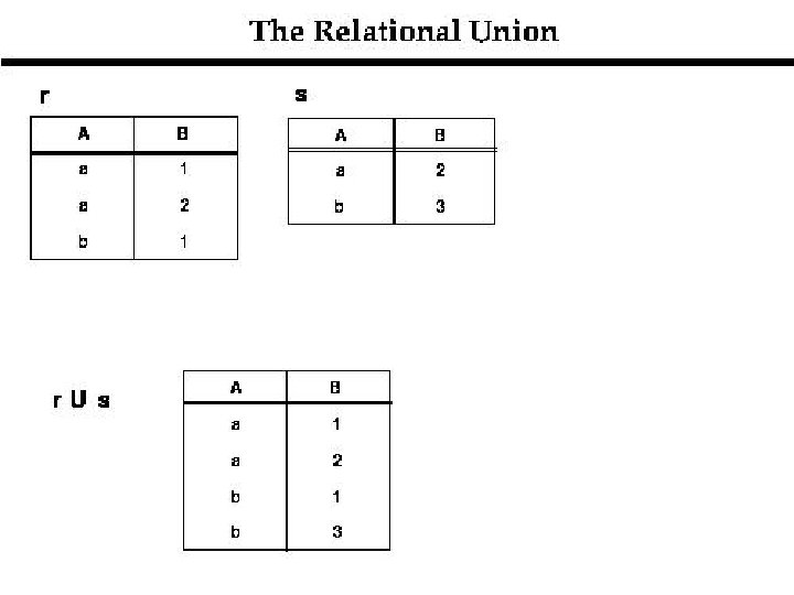 Relational Algebra Operations from Set Theory z. The UNION, INTERSECTION, and MINUS Operations