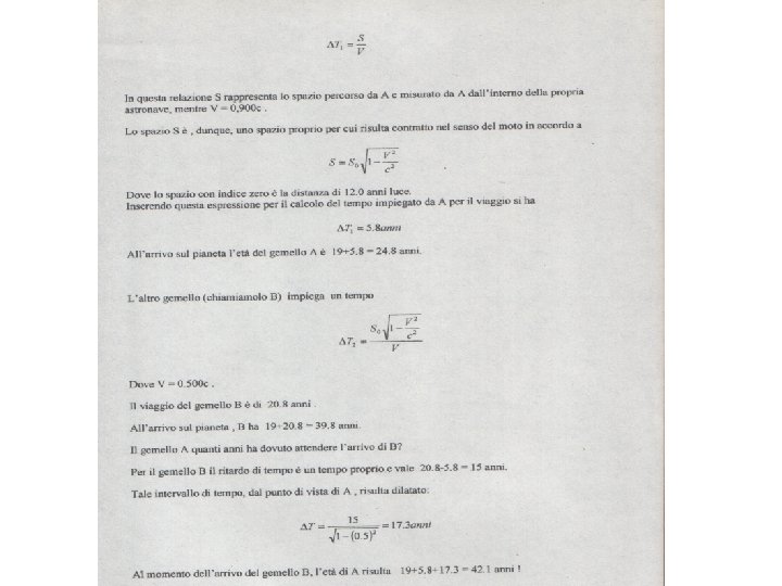 IL PARADOSSO DEI GEMELLI Due gemelli di 19 anni d’età lasciano la Terra e viaggiano verso un pianeta lontano 12 anni luce. Si supponga che il pianeta e la Terra siano in quiete relativa. I gemelli partono nello stesso istante su veicoli diversi. Un gemello viaggia alla velocità di 0. 900 c e l’altro alla velocità di 0. 500 c; al loro incontro sul pianeta, quale dei due gemelli è più vecchio?