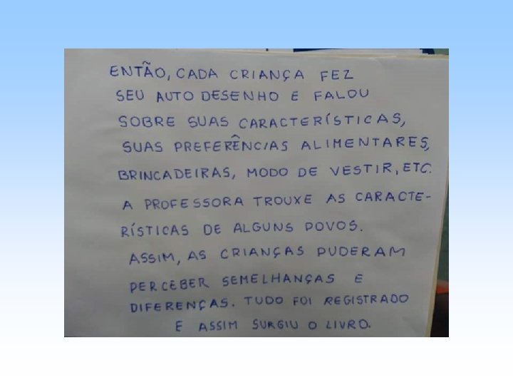 Uma questão fundamental é fazer com que as crianças superem suas limitações expressando suas ideias e sentimentos por meio de diversas linguagens e gêneros textuais, demonstrando valorização das próprias características e respeitando as características do outro, possibilitando, desde cedo, o enfrentamento de práticas de racismo e outros tipos de preconceitos.