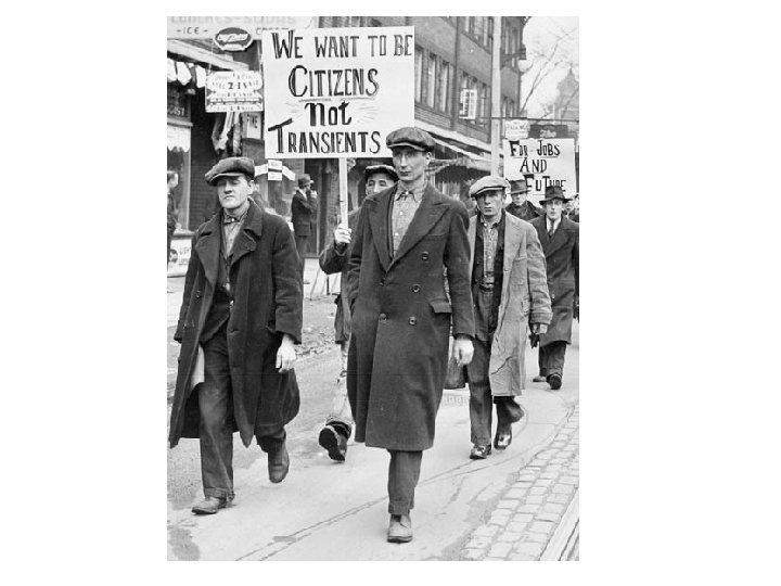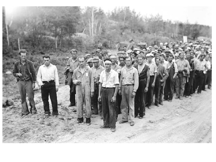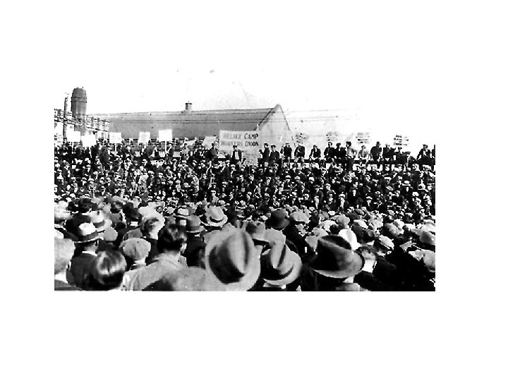 Complaints of Relief Camp Workers • “The superintendents are …too severe. It’s worse than being in the army!” • “We aren’t supposed to form any committees to try and improve things. ” • “The food is lousy!” • “The doctor is never here to take care of the sick and injured. And all the dentist does to any tooth is yank it out. ”