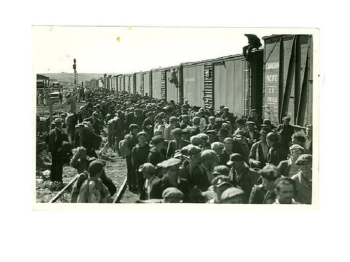 Trek Timeline… • May 30: Trek leaves Vancouver: “riding the rods” • June 6 – Trek arrives in Golden BC – townspeople offer support • June 12 – Trek arrives in Moose Jaw SK – more expressions of support • Trek arrives in Regina SK – trek grows to more than 5000 riders