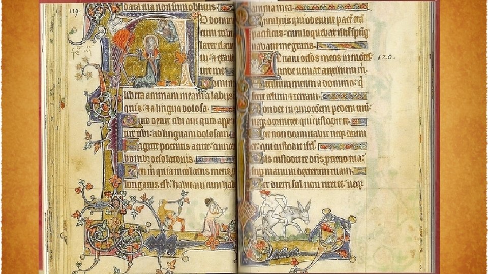 Illuminated Manuscripts • Written on parchment (made of calf, sheep or goat skin) • Mostly by monks at monasteries