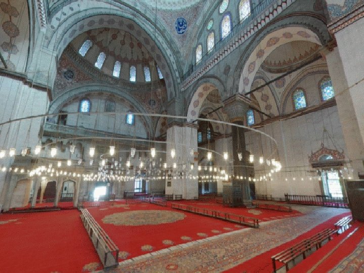 Islamic Mosque • Unlike a church, a Mosque is not viewed as a sanctified place but as a location for the community to worship • Organized around a central courtyard. Pulpit faces Mecca • Minaret- a tower from which a muzzan summons people to worship