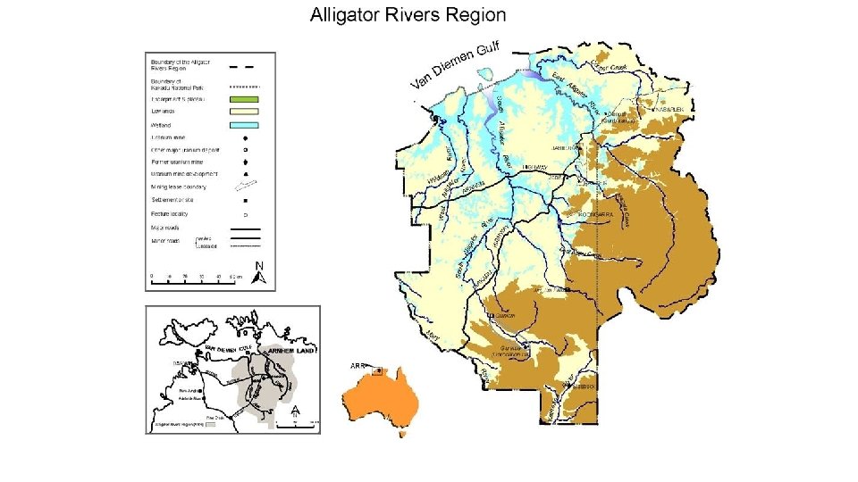 Uranium mining post 1945 Since 1954 Uranium mining activity has been more or less continuous in the NT • Rum Jungle operated between 1954 and 1971 mining and processing copper and uranium ores - now the focus of a remediation planning project • Significant deposits were found in the Pine Creek area and up into the Alligator Rivers Region • South Alligator Valley - 54 radiological anomalies; 19 mine sites • Operated between 1959 and 1965 • The total production for this field was approximately 840 tonnes of U 308. • Commonwealth funded hazard reduction works 1990 -92 • Legacy sites now remediated 2007 -2009 • Other Legacy U Mines • Older mines in the Pine Creek area e. g. Fleur de Lys • Now lies within a gold mine that has been restarted a couple of times • Adelaide River Mines - remediated • Westmoreland area - remediated