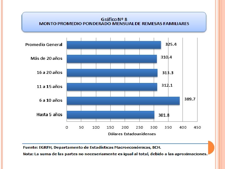El costo de las remesa el costo promedio de envío de US$200. 00 disminuyó en 9. 2% al pasar de un promedio de US$11. 93 en el tercer trimestre 2010 a US$10. 83 en el trimestre del 2011.