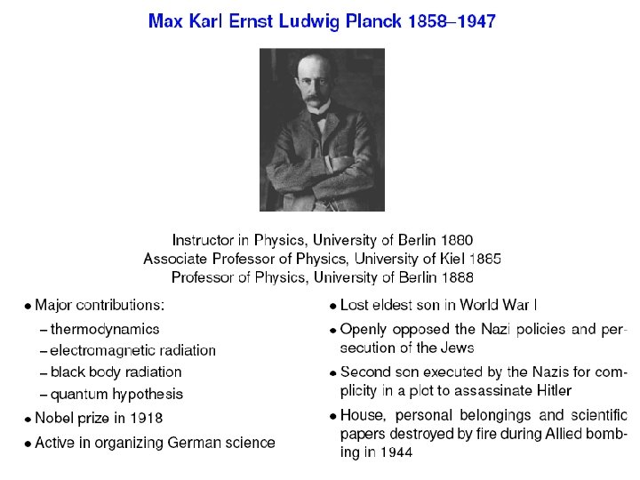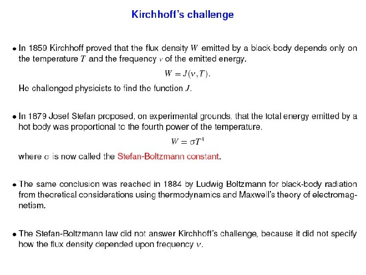 Planck’s Blackbody Function The nature of B (T) was one of the great findings of the latter part of the 19 th century and led to entirely new ways of thinking about energy and matter. Insert fig 3. 1 There are 4 ‘laws’ or properties of the Planck function that have important consequences: (i) Wien displacement law; (ii) Stefan-Boltzmanm Law; (iii) Rayleigh-Jeans law and (iv) Wein radiation law