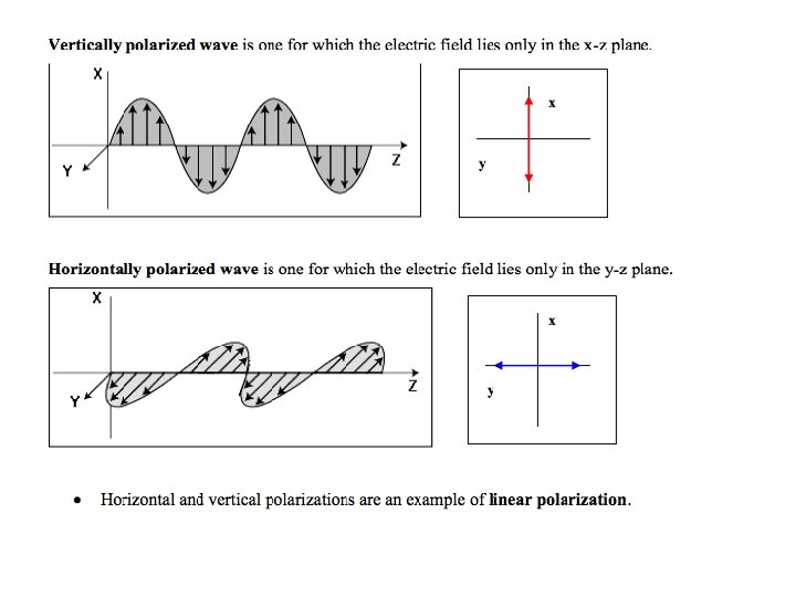 NOTE: Measurements of polarization are actively used in remote sensing in the solar and microwave regions. Polarization in the microwave–mainly due to reflection from the surface. Polarization in the solar –reflection from the surface and scattering by molecules and particulates. Active remote sensing (e. g. , radar) commonly uses polarized radiation.