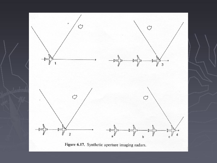 3. Synthetic Aperture Radar Systems (SAR) ► Real aperture SLAR system - the oldest, simplest, and least expensive of radar systems ► Synthetic Aperture Systems (SAR) - use an array of real antennas to synthesize the effect of a very long antenna
