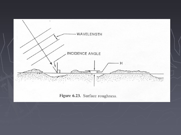 5. Radar Image Brightness ► Geometric characteristics - slope facing with respect to sensor determines signal returns - surface roughness determines the type and amount of returns