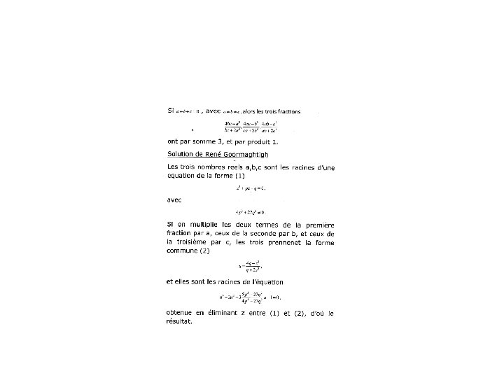 • Il n’a pas oublié les questions d’Algèbre. Voici, a titre d’exemple, un problème proposé par lui même dans Mathesis 1958:
