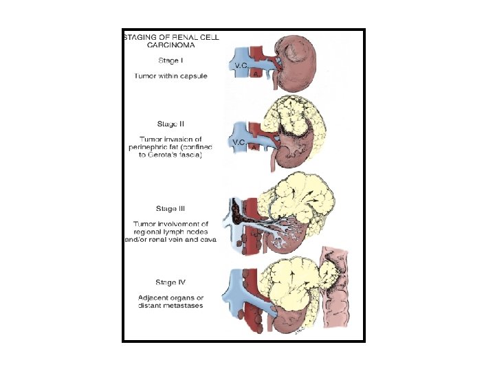 Diagnosis • Labs: CBC, LFT, BUN/Cr, LDH, urinalysis • Imaging: – CT abdomen – MRI abdomen if CT suggests IVC involvement • Metastatic evaluation: – Chest X ray – Bone scan or MRI brain only if clinically indicated
