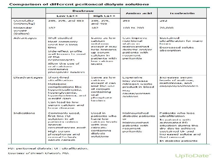Peritoneal Dialysis Solutions Peritoneal dialysis solutions primarily consist of water, osmotic agents, electrolytes, and minerals.
