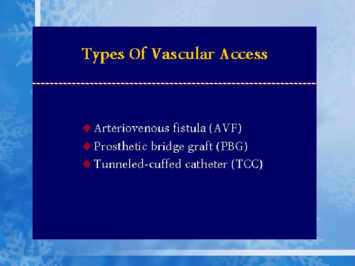 Indications for initiating Hemodialysis • In patients with calculated creatinine clearance <20 ml/min/1. 73 m 2 the onset of: *Uremic symptoms Nausea/emesis Altered sleep pattern *Altered mental status Coma Stupor Tremor Asterixis Clonus Seizures