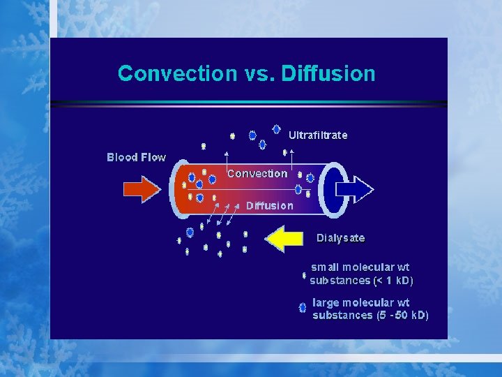 Diffusive Clearance • A result of random molecular motion • Influenced by concentration gradient of the solute and its Molecular weight as well as by the membrane permeability to the solute