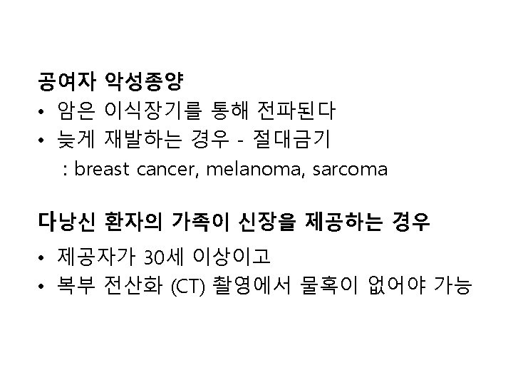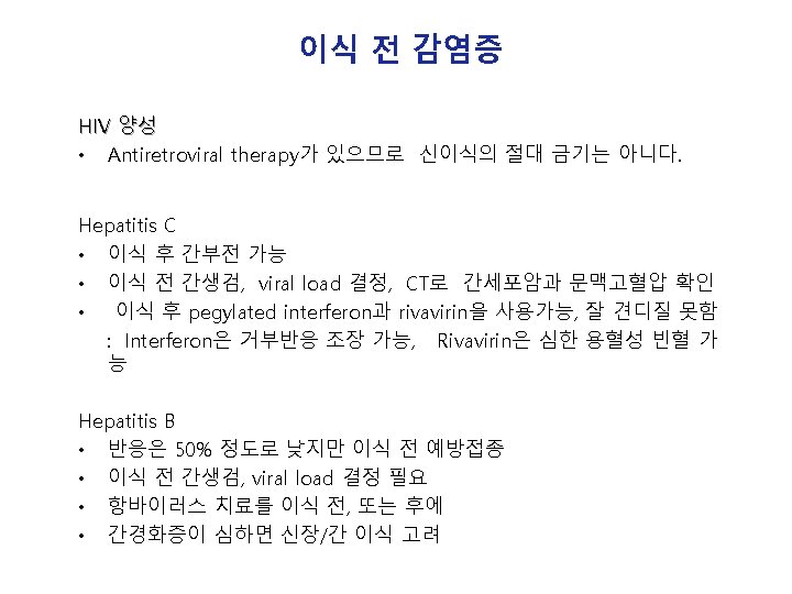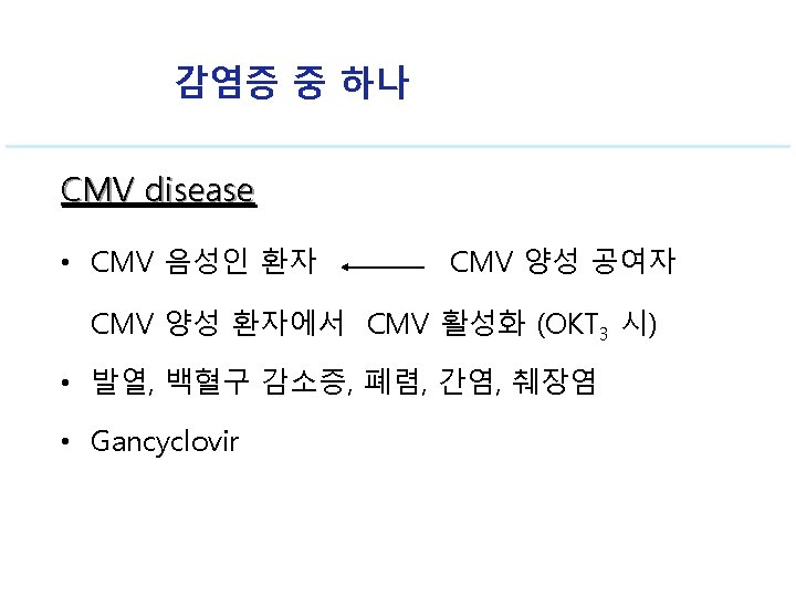 Polyomavirus type BK (BKV) nephropathy • Allograft failure in renal-transplant recipients • 1~5% of renal-transplant recipients • seroprevalence rates of polyomavirus infection; 90% • Immunosuppression w/ Tacrolimus, Mycophenolate mofetil • Reducing the level of maintenance immunosuppression • Decoy cells viral inclusions in the urine, Non-specific • BKV DNA quantifiable surrogate marker for course of disease