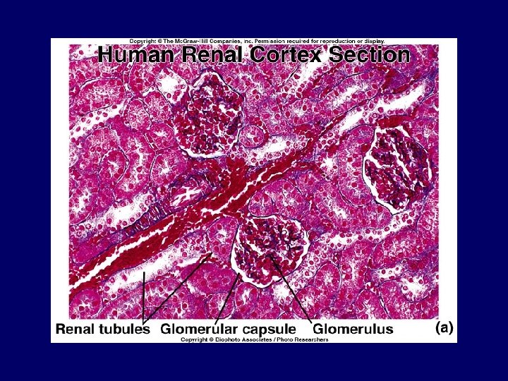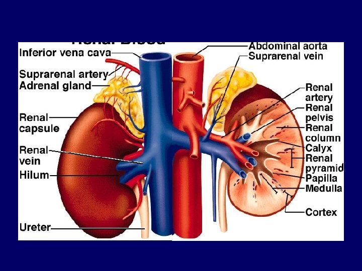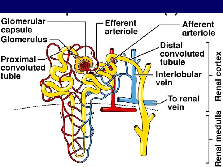Three Primary Functions 1. Remove Cellular Wastes -by filtration in glomerulus & by excretion in calyx & beyond 2. Regulate Body Fluid Volume -by reabsorption in loop of henle (Na. Cl gradient) & CD (ADH) 3. Regulate Ion Concentration -by secretion and reabsorption in DCT (aldosterone)