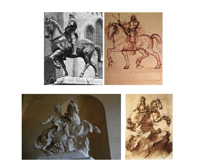 Provocările reprezentării ecvestre - Unitatea compoziţiei şi relaţia dintre cal şi călăreţ (naturalismul) - Corectitudinea reprezentării (proporţia) - Sugestia mişcării (dinamica) - Suspendarea masei (imponderabilitatea) - Integrarea în ansamblu (spaţialitatea) - Corecţia optică (racursiul)