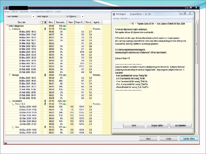 Bu uyarıları dikkate alarak çalışan sınıf yada öğrenci kesinlikle dili sevecek, başarmanın mutluluğunu yaşacaktır. Aşağıdaki öğrencimize bakacak olursak doğru çalışma yöntemini anlamış ve bunu uygulayan öğrencinin ekranın nasıl olduğunu görebiliriz.