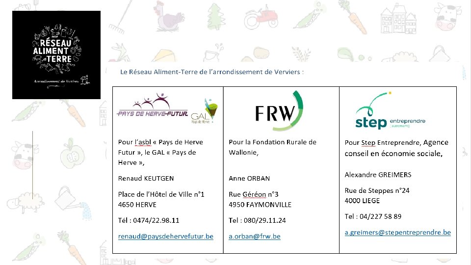 Présentation du projet de Réseau Aliment-Terre de l’arrondissement de Verviers