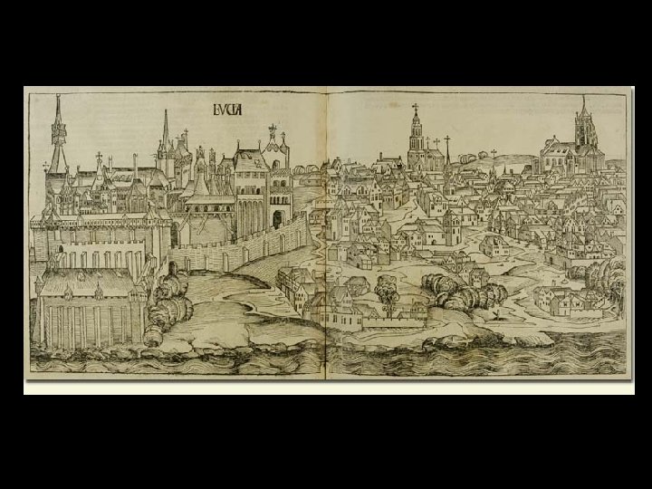 Buda első ábrázolása Fametszet Hartmann - Schedel 15. században megjelent Világkrónika című könyvéből