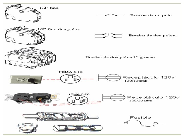 Fusibles - Son los dispositivos usados para protección del sistema. Electrodo de tierra - Consiste en una varilla de acero de 8’ de largo por 5/8” de grueso, revestida de cobre “Copperweld”.
