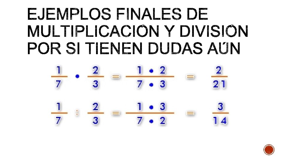 § COMO SE PUEDE OBSERVAR EN LOS EJEMPLOS DEL LADO IZQUIERDO, LA MULTIPLICACIÓN ES DIRECTA, NUMERADOR CON NUMERADOR Y DENOMINADOR CON DENOMINADOR.