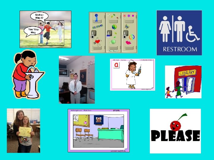 Requests to go elsewhere - ¿Puedo…, por favor? ¿Puedo hablar con el May I talk to Mr. Sanchez, please? Sr. Sánchez, por favor? ¿Puedo hablar con la May I talk to Mrs. Hischke, please? Sra. Hischke, por favor? ¿Puedo ir a la enfermera, May I go to the nurse, please? por favor? ¿Puedo ir a la biblioteca, May I go to the library, please? por favor?