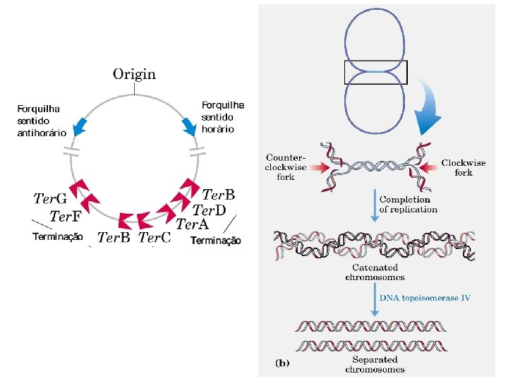 O genoma bacteriano circular constitue um único replicon A velocidade da forquillha de replicação bacteriana é 50000 pb/min Um única origem de replicação em E. coli (Ori. C, 245 pb)