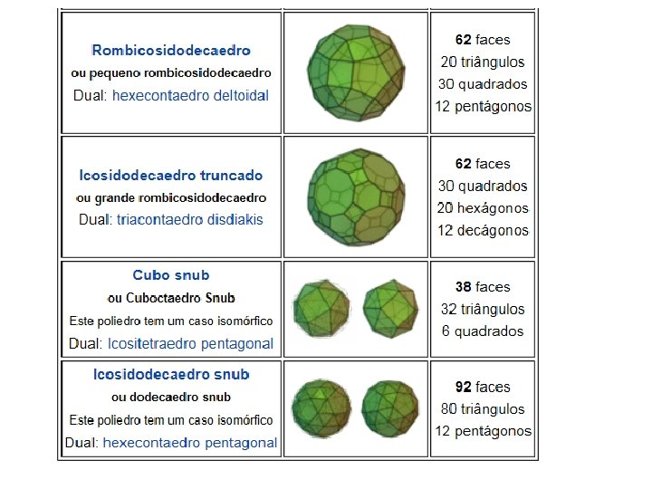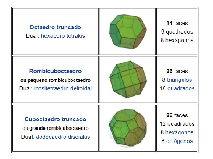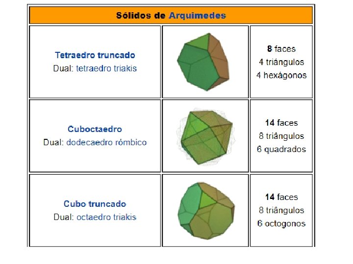 Poliedros ARQUIMEDIANOS ………………………. . Os poliedros Arquimedianos são poliedros que resultam da truncagem (secção dos vértices) dos sólidos platónicos, existindo 13 poliedros.