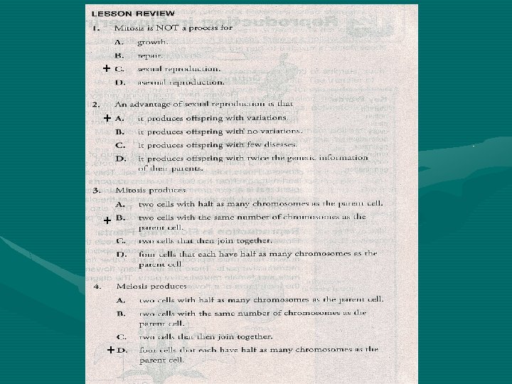 Sexual Reproduction – Production of new organism from 2 parents , a male and a female. Sex Cell – Cell that has half the number of chromosomes found an organism’s body cells. An egg or a sperm. 23 23 chromosome s chromosom es Gamete 46 chromosome s - New person not exactly like each par 2 complete cells join, new baby has twice the chromosomes as eac