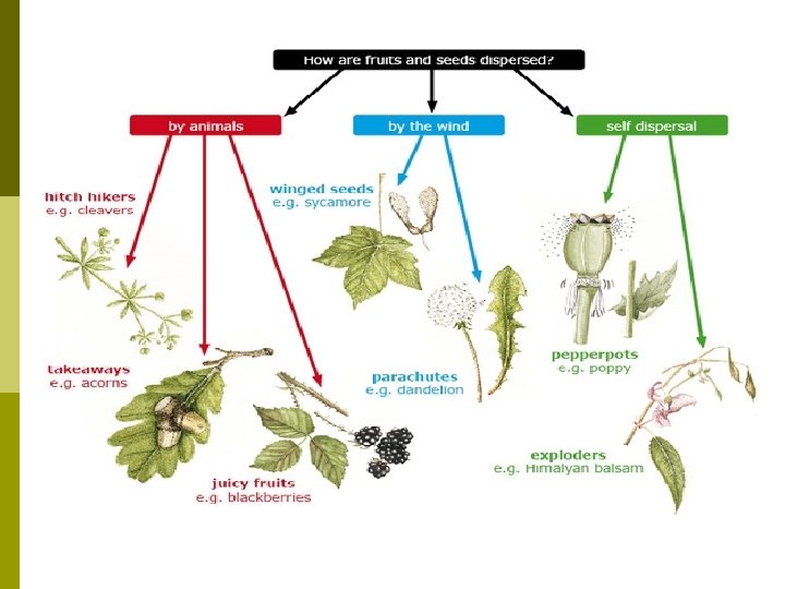 Fruits and seed dispersal Animal dispersal Strawberry Fragaria vesca Explosive dispersal Bird’s foot trefoil Lotus corniculatus Animal dispersal Wood avens Geum urbanum Wind dispersal Ragwort Senecio © 2008 Paul Billiet ODWS