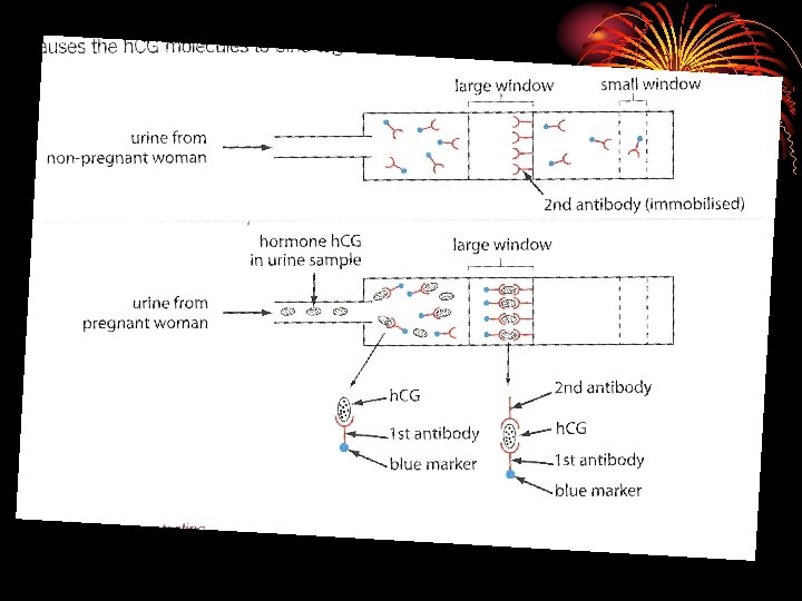 Pregnancy Testing Kits • These use monoclonal antibodies to test for hormone h. CG • h. CG produced by placenta • The test relies on the reaction between h. CG and antibodies bound to coloured latex beads