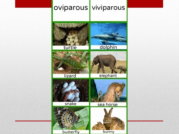 OVOVIVIPARITY • Refers to animals that do not lay eggs , but keep them in their bodies until they hatch. • The body temperature is necessary for them to hatch. • There is no connection between the embryo and the mother (no placenta) • Examples : Sharks , lizards cockroaches and some snakes • ADVANTAGES : • The young one is protected from cold and predators to ensure survival • The young one can develop to a fairly large size before birth • DISADVANTAGES: • Fewer offspring, • More parental care need