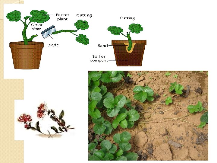 5 Types of Asexual Reproduction Vegetative Propagation – Cuttings from plants grow into new individuals, or new runners (root structures) are produced. KINGDOM: PLANT EX: Strawberry plants, monkey grass, potatoes.
