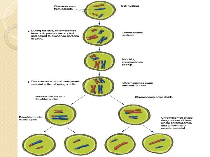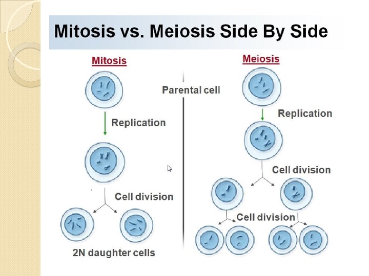 ADVANTAGES AND DISADVANTAGES OF SEXUAL REPRODUCTION Advantage: 1. Allows for individualism or variation. There will never be two just alike unless they are identical twins. v TWO different genetic codes from 2 different parents results in variation in a species. For example, no two quarter horses, pine trees, blue whales, dogwoods or humans are exactly alike. (Good for “weeding” out bad genes. Disadvantages: 1. Takes more time (gestation). 2. More energy required to find a mate, etc.