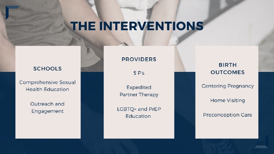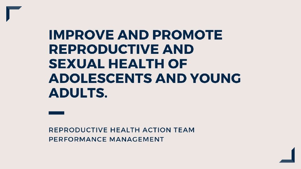2017 -2019: Reproductive Health Goal: Improve and promote reproductive and sexual health of adolescents and young adults Objectives: Reduce total preterm birth among Peoria County African American/Black women to 11. 4% by 2019. Reduce gonorrhea rates among men and women ages 15 -44 years by 10% by 2019. Reduce pregnancies among adolescent females age 15 -19 years by 10% by 2019.